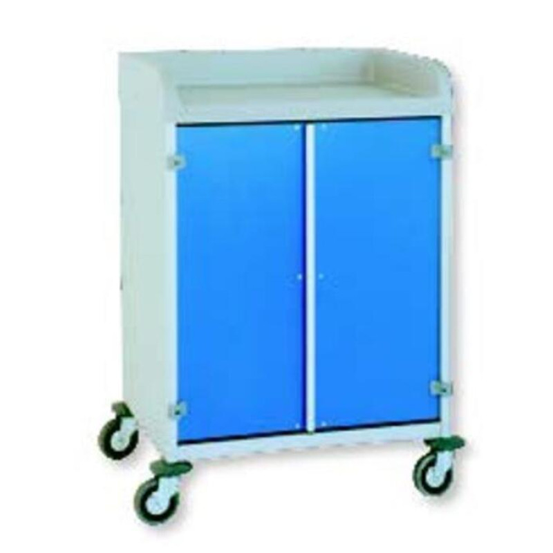 Chariot de change professionnel 210 L, 1 étagère, avec portes en plastique bleue, Alvi 3950 CR | AMS